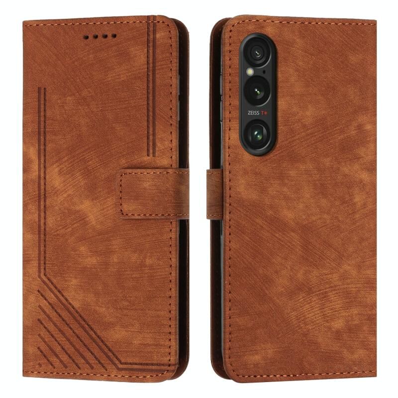 Για Sony Xperia 1 VI δέρμα αίσθηση λωρίδα μοτίβο δερμάτινη θήκη τηλεφώνου με κορδόνι (καφέ)