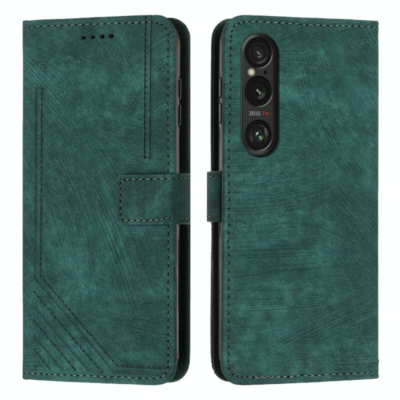 Για Sony Xperia 1 VI δέρμα αίσθηση λωρίδα μοτίβο δερμάτινη θήκη τηλεφώνου με κορδόνι (πράσινο)