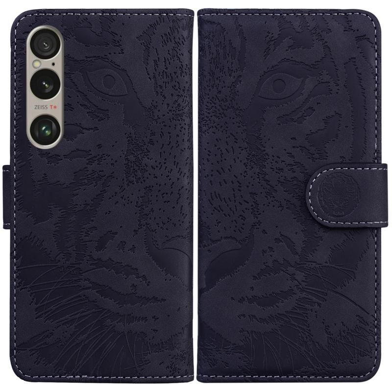Θήκη τηλεφώνου από δέρμα με σχέδιο Tiger Embossing για Sony Xperia 1 VI (Μαύρο)