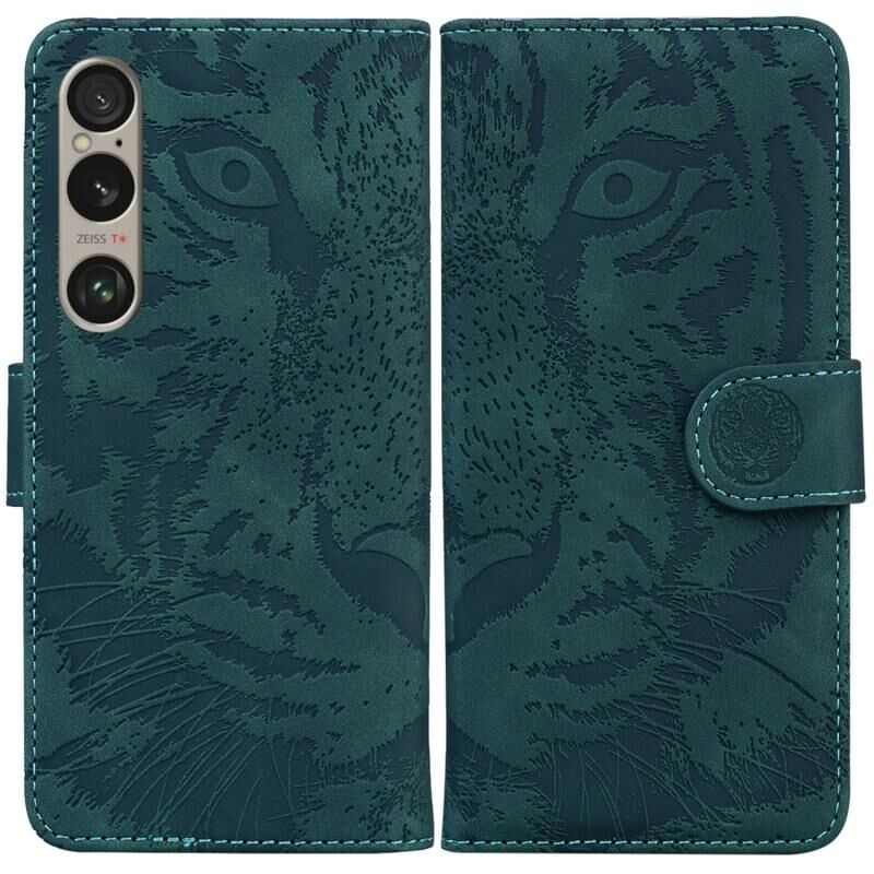 Θήκη τηλεφώνου από δέρμα με σχέδιο Tiger Embossing για Sony Xperia 1 VI (Μαύρο)