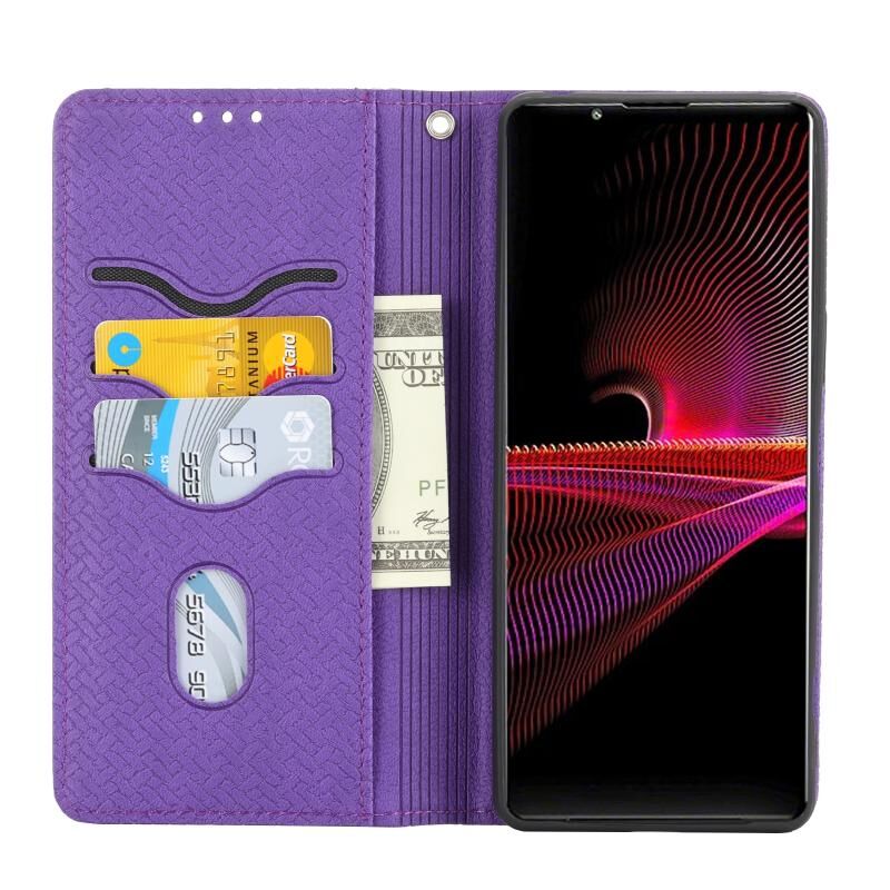 Για Sony Xperia 1 VI Υφαντή υφή ραφή μαγνητική δερμάτινη θήκη τηλεφώνου (μωβ)