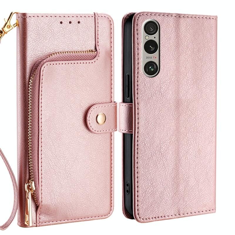 Για Sony Xperia 1 VI φερμουάρ τσάντα δερμάτινη θήκη τηλεφώνου (ροζ χρυσό)