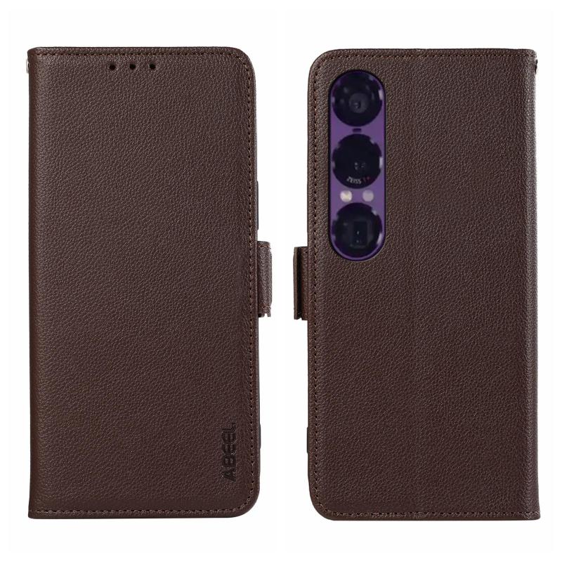 For Sony Xperia 1 VII ABEEL Side-Magnetic Litchi Pattern Leather RFID Phone Case(Brown)