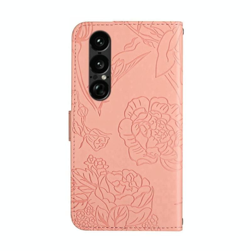 For Sony Xperia 1 VII HT03 Skin Feel Butterfly Embossed Flip Leather Phone Case(Pink)