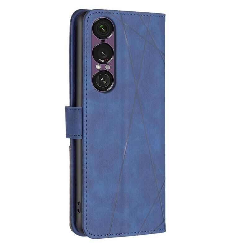 For Sony Xperia 1 VII Magnetic Buckle Rhombus Texture Leather Phone Case(Blue)