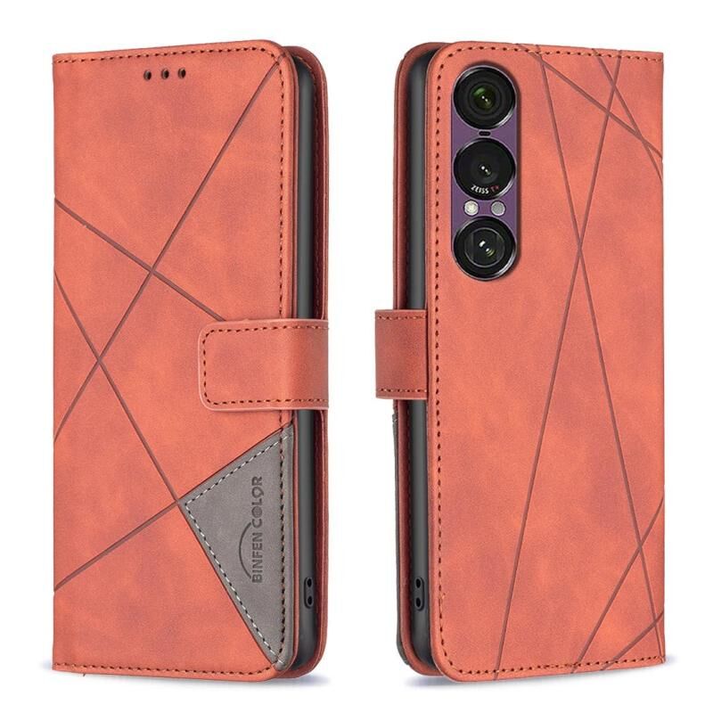 For Sony Xperia 1 VII Magnetic Buckle Rhombus Texture Leather Phone Case(Brown)