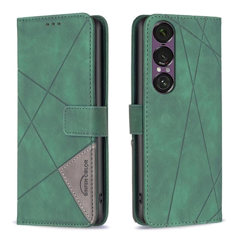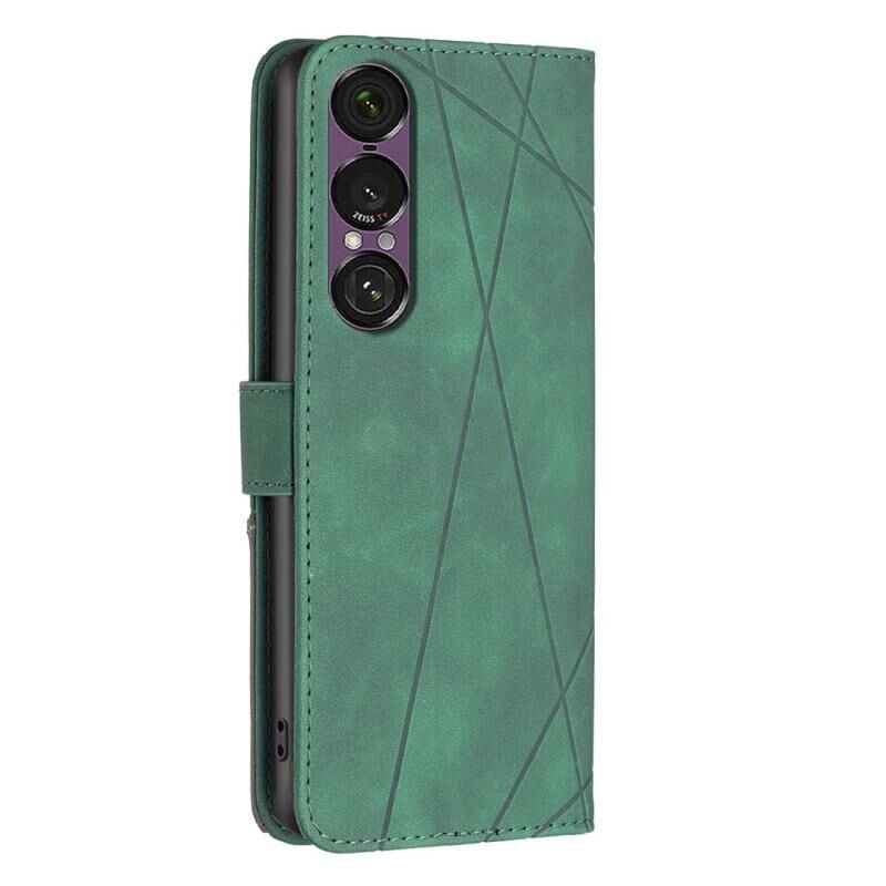 For Sony Xperia 1 VII Magnetic Buckle Rhombus Texture Leather Phone Case(Green)