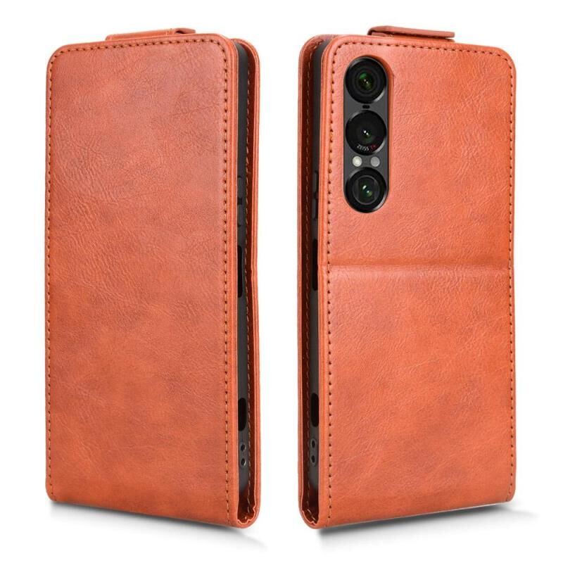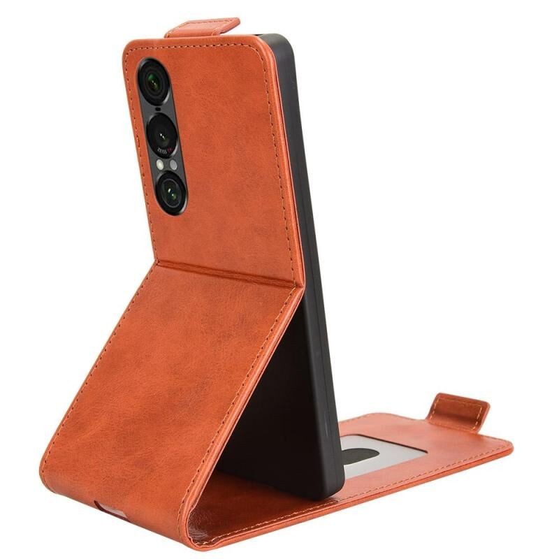 For Sony Xperia 1 VII Magnetic Vertical Flip Leather Phone Case with Buckle(Brown)