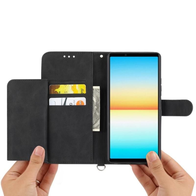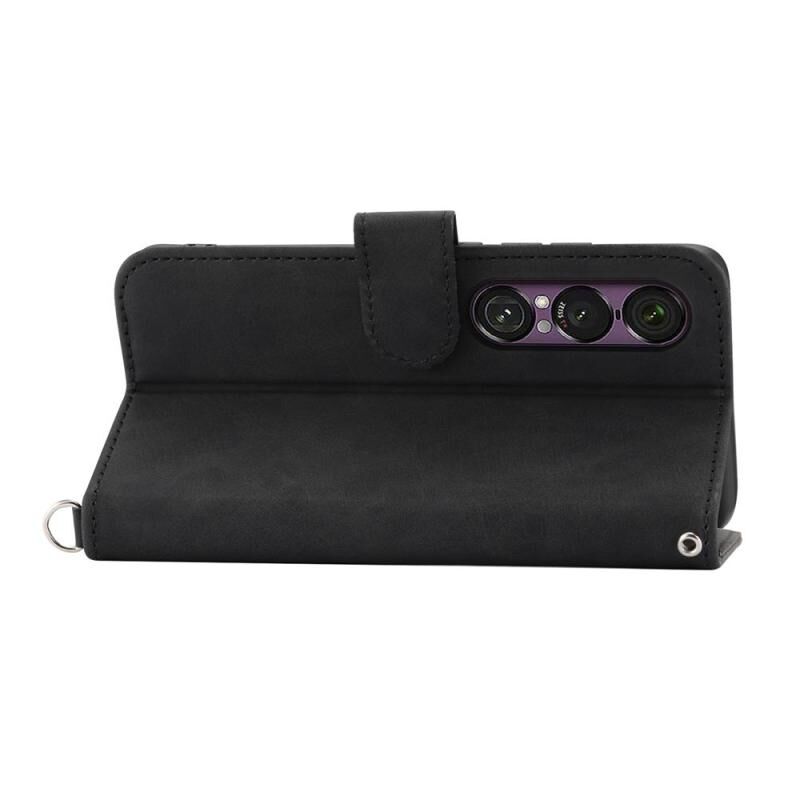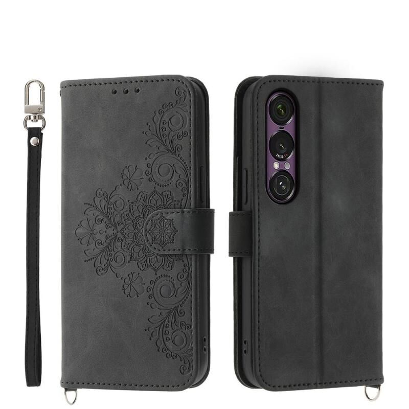 For Sony Xperia 1 VII Skin-feel Flowers Embossed Wallet Leather Phone Case(Black)