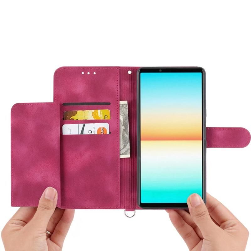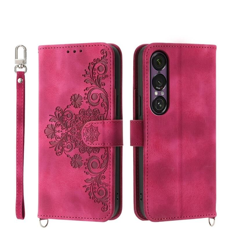 For Sony Xperia 1 VII Skin-feel Flowers Embossed Wallet Leather Phone Case(Wine Red)