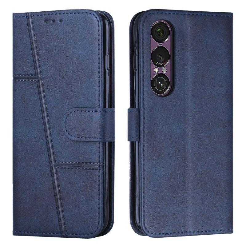 For Sony Xperia 1 VII Stitching Calf Texture Buckle Leather Phone Case(Blue)