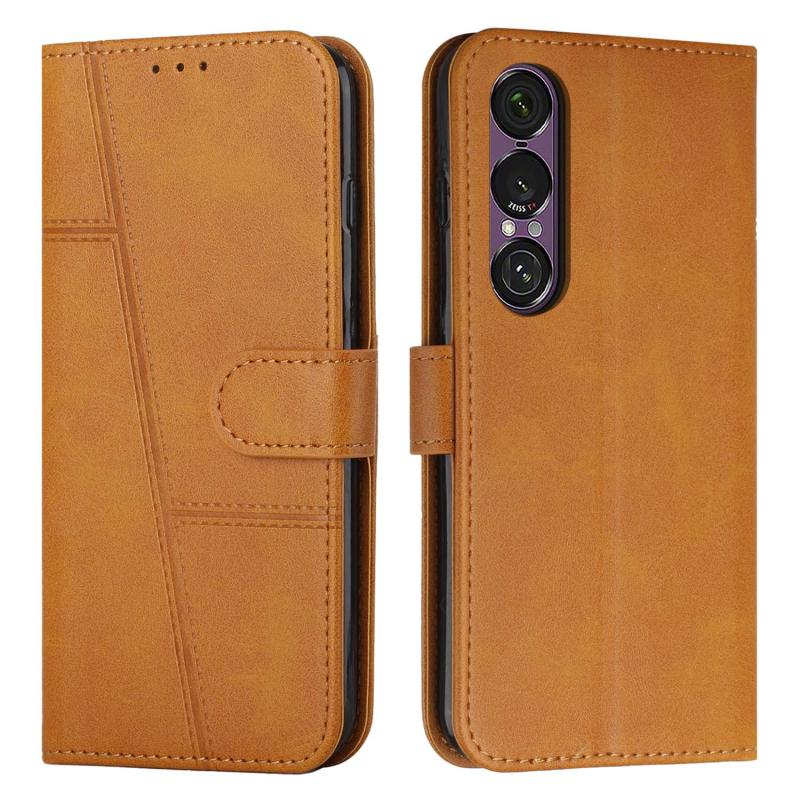 For Sony Xperia 1 VII Stitching Calf Texture Buckle Leather Phone Case(Yellow)