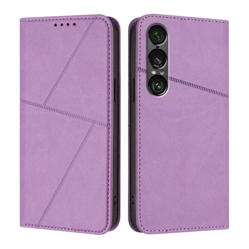 For Sony Xperia 1 VII Strong Magnetic Frosted Flip Leather Phone Case(Light Purple)