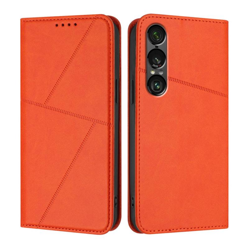 For Sony Xperia 1 VII Strong Magnetic Frosted Flip Leather Phone Case(Orange)