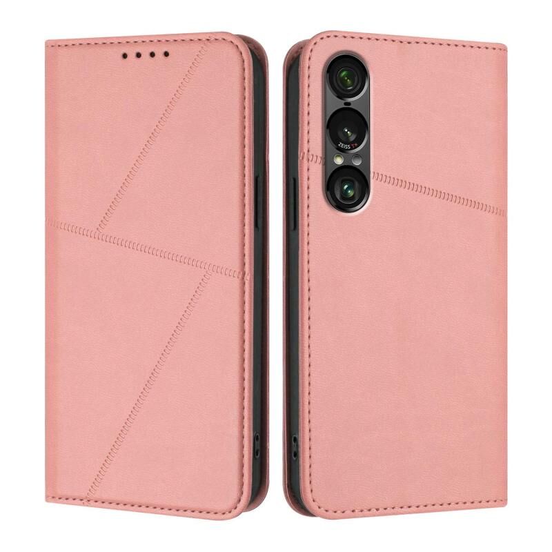 For Sony Xperia 1 VII Strong Magnetic Frosted Flip Leather Phone Case(Pink)