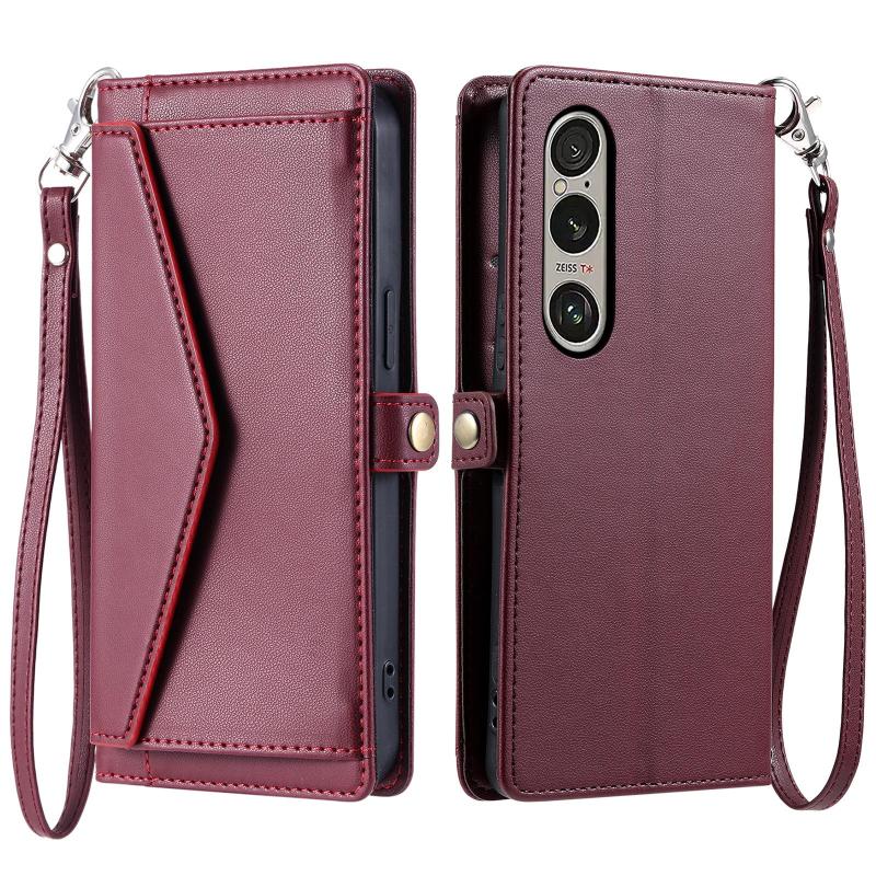 For Sony Xperia 1 VII Wallet Multi-card Slot Leather Phone Case with Lanyard(Wine Red)