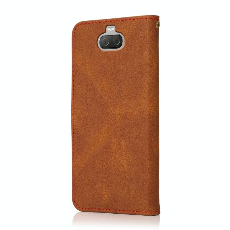 Θήκη τηλεφώνου από δέρμα με διπλή ραφή για Sony Xperia 10 (Καφέ-Κόκκινο)