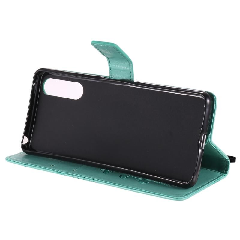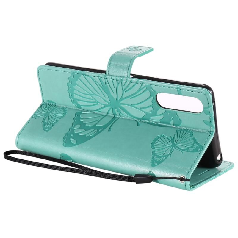 Θήκη δέρματος οριζόντιας αναδίπλωσης με ανάγλυφο σχέδιο 3D πεταλούδων για Sony Xperia 10 II, με βάση & υποδοχή κάρτας & πορτοφόλι (Πράσινο)