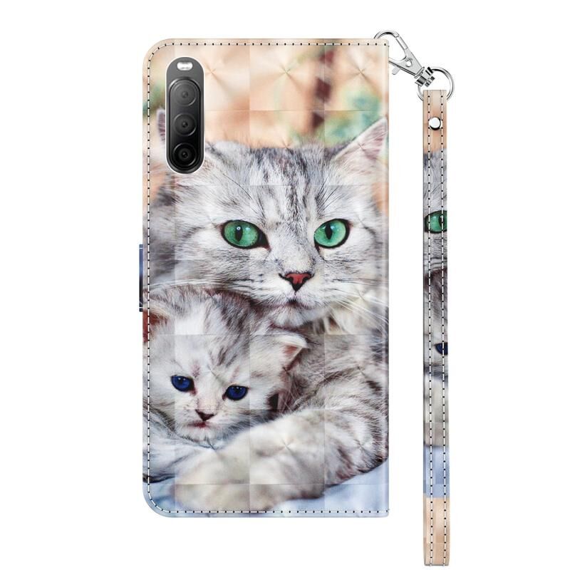 Θήκη τηλεφώνου από δέρμα με τρισδιάστατη ζωγραφική για Sony Xperia 10 II (Δύο ερωτευμένες γάτες)