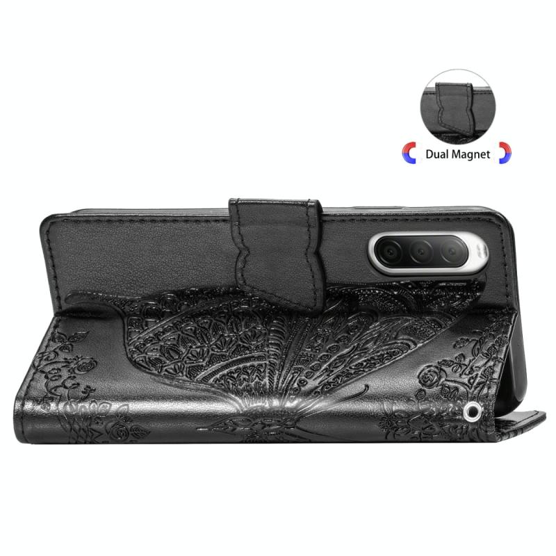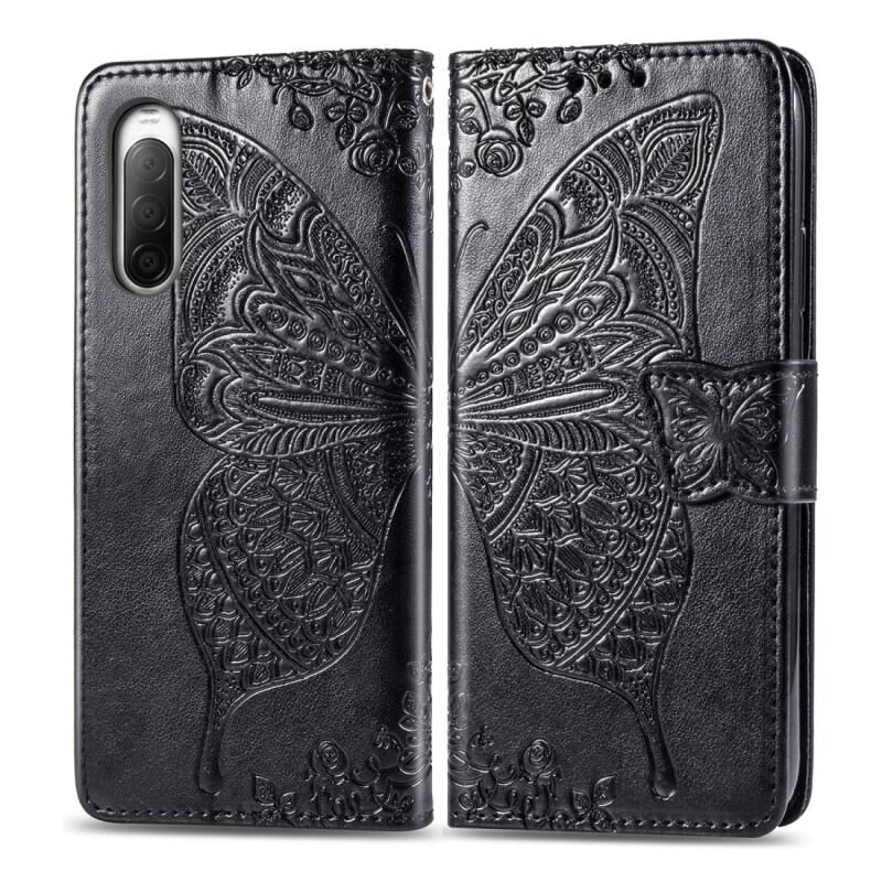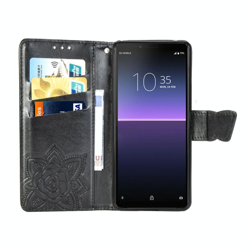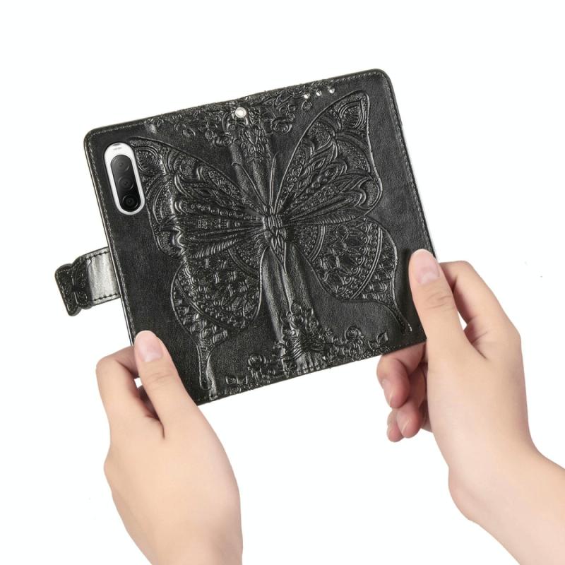For Sony Xperia 10 II Butterfly Love Flower Embossed Horizontal Flip Leather Case with Bracket / Card Slot / Wallet / Lanyard(Black)