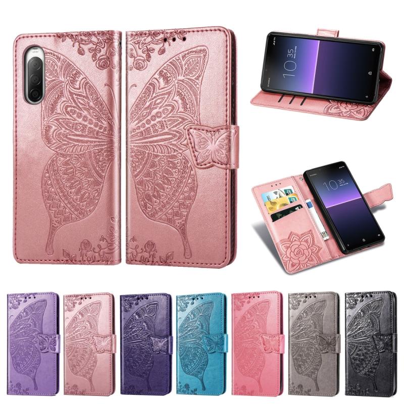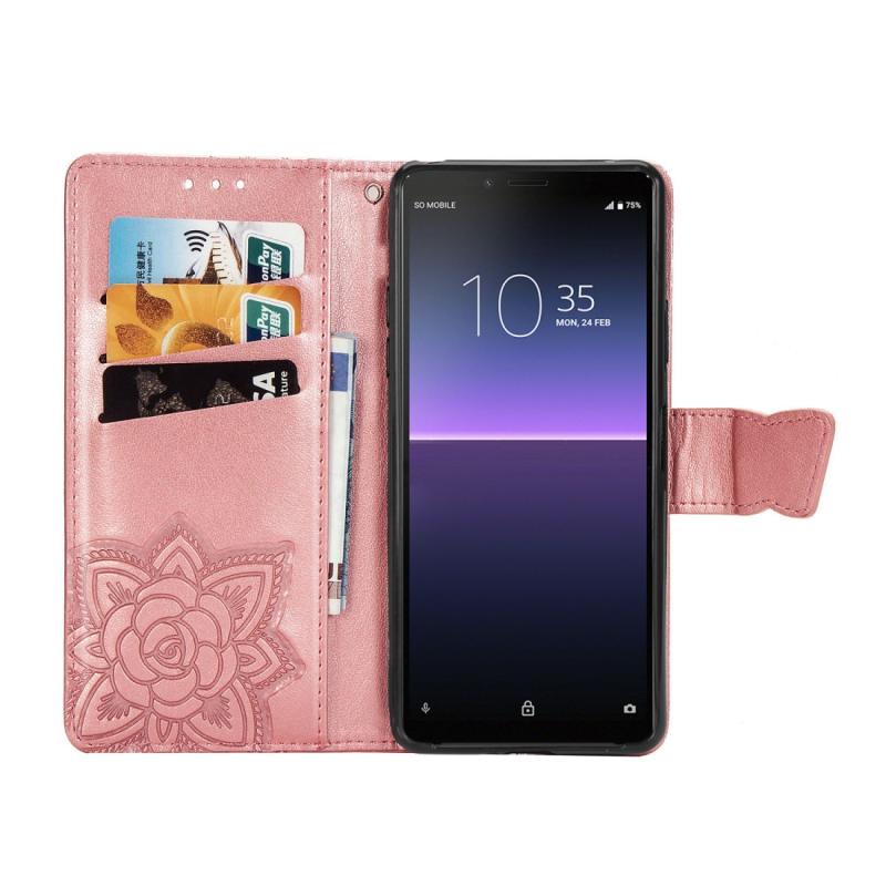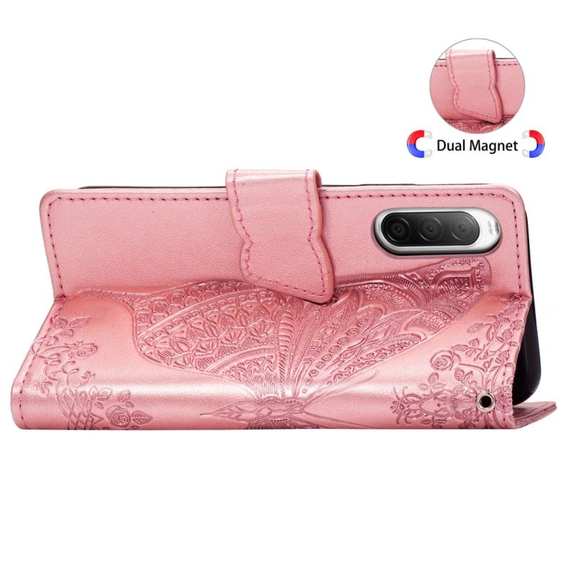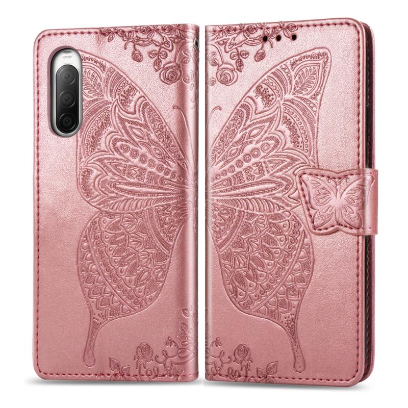 For Sony Xperia 10 II Butterfly Love Flower Embossed Horizontal Flip Leather Case with Bracket / Card Slot / Wallet / Lanyard(Rose Gold)