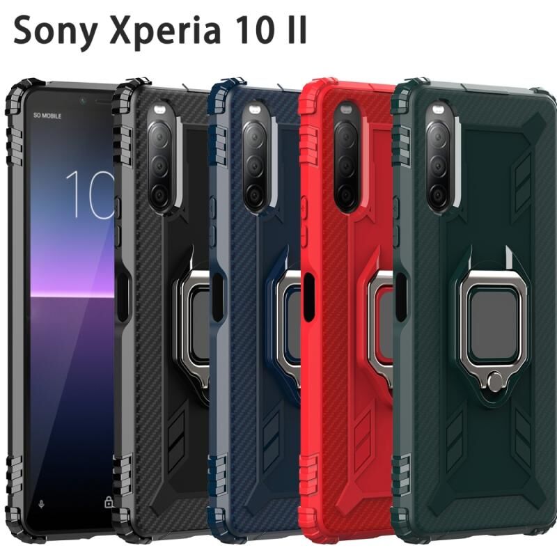 Για Sony Xperia 10 II Προστατευτική θήκη από ανθρακονήματα με περιστρεφόμενο δακτύλιο 360 μοιρών (πράσινο)