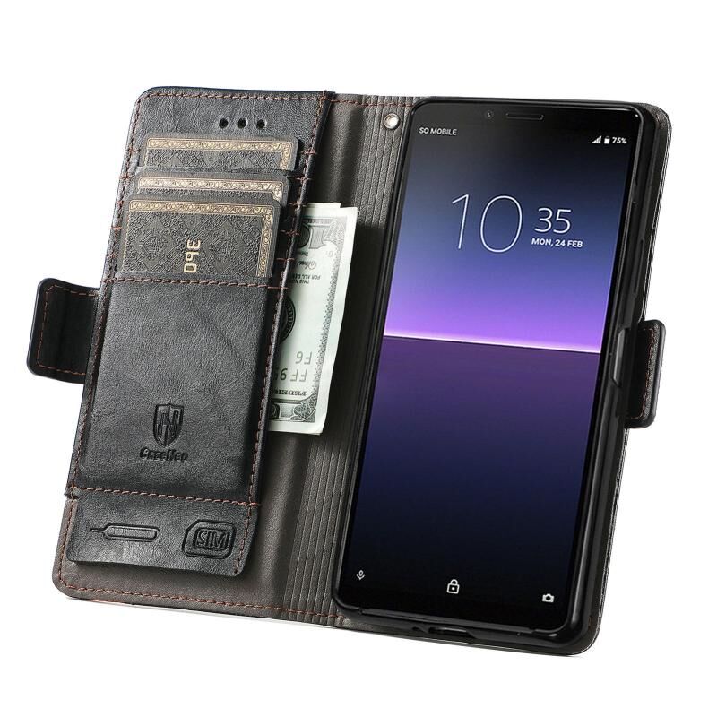 Για Sony Xperia 10 II CaseNeo Splicing Διπλή μαγνητική πόρπη δερμάτινη θήκη τηλεφώνου (μαύρο)