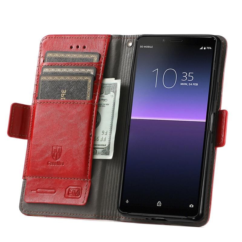 Για Sony Xperia 10 II CaseNeo Splicing Διπλή μαγνητική πόρπη δερμάτινη θήκη τηλεφώνου (κόκκινο)