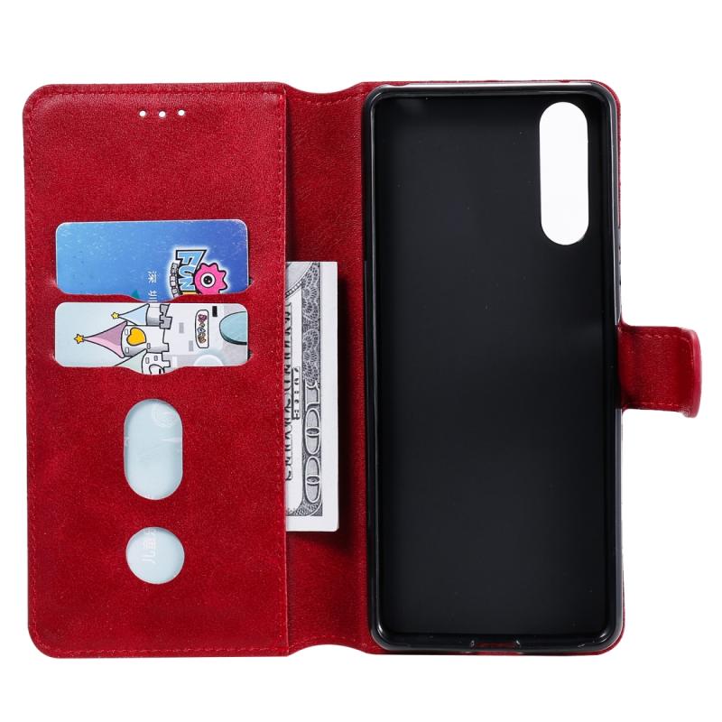 For Sony Xperia 10 II Classic Calf Texture PU + TPU Horizontal Flip Leather Case, with Holder & Card Slots & Wallet(Red)