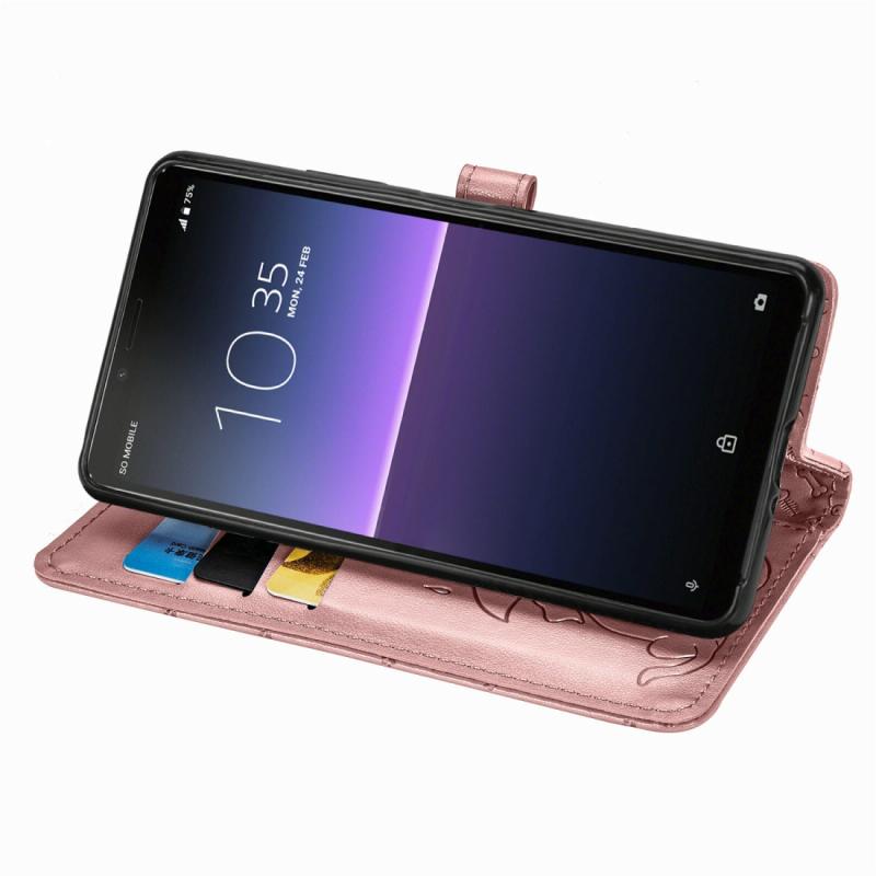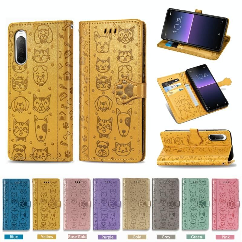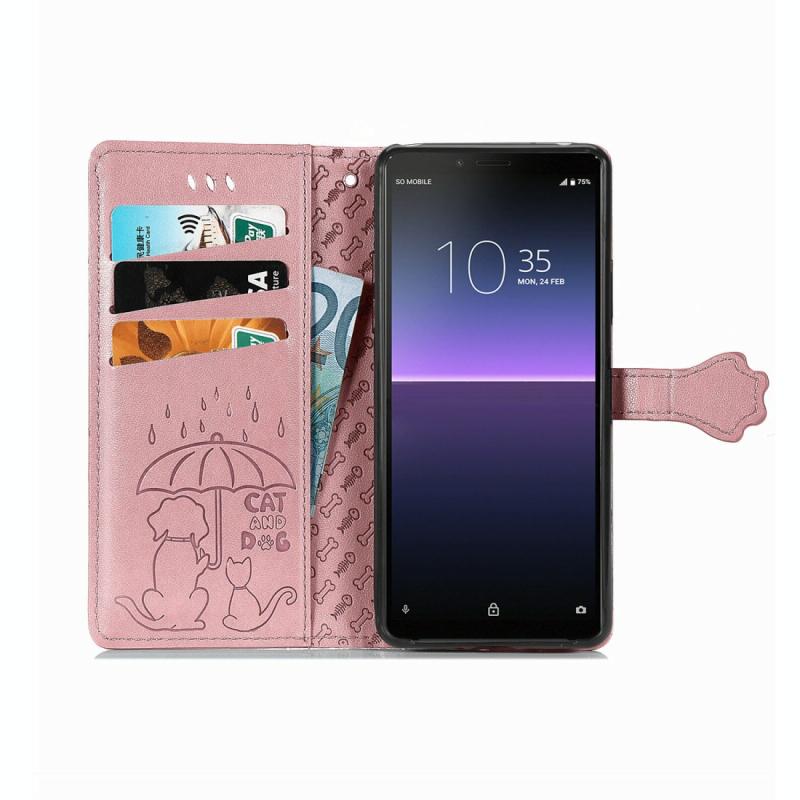 For Sony Xperia 10 II Cute Cat and Dog Embossed Horizontal Flip Leather Case with Bracket / Card Slot / Wallet / Lanyard(Rose Gold)