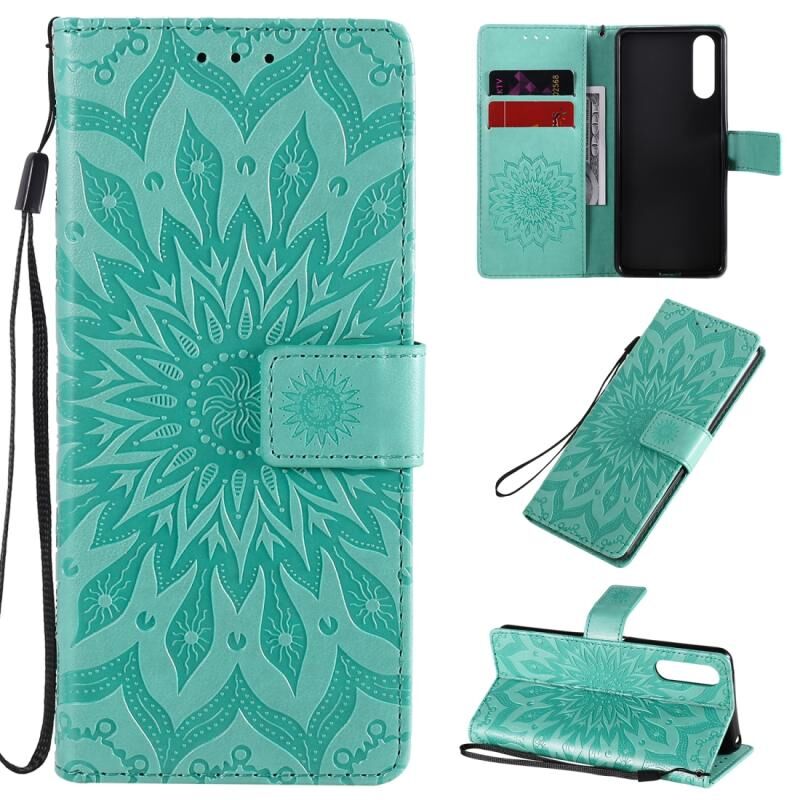 Για Sony Xperia 10 II Ανάγλυφο ηλιοτρόπιο μοτίβο οριζόντια Flip PU δέρμα υπόθεση με θήκη & υποδοχές για κάρτες & πορτοφόλι & κορδόνι (πράσινο)