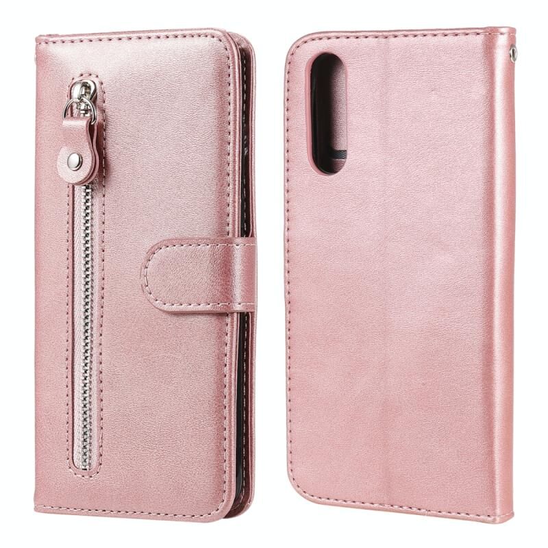 Για Sony Xperia 10 II Fashion Calf Texture φερμουάρ οριζόντια Flip δερμάτινη θήκη με υποδοχή & υποδοχές για κάρτες & λειτουργία πορτοφολιού (Rose Gold)