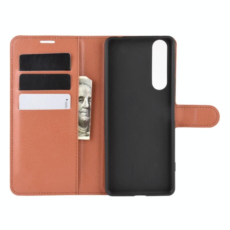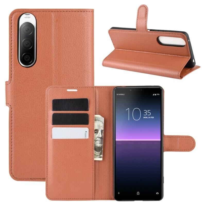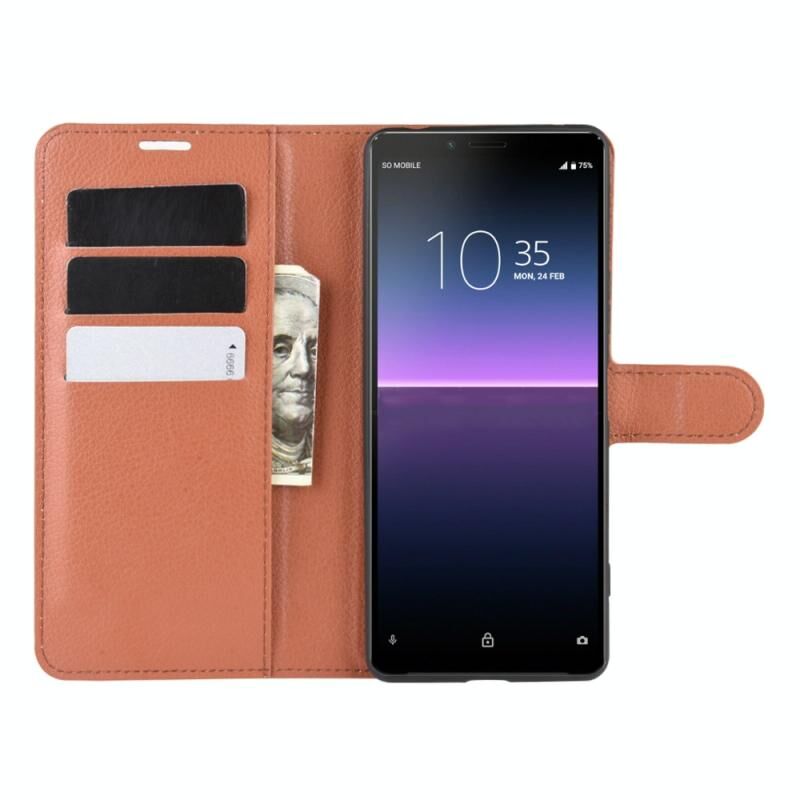 Για Sony Xperia 10 II Litchi Texture Οριζόντια Flip προστατευτική θήκη με θήκη & υποδοχές για κάρτες & πορτοφόλι (καφέ)