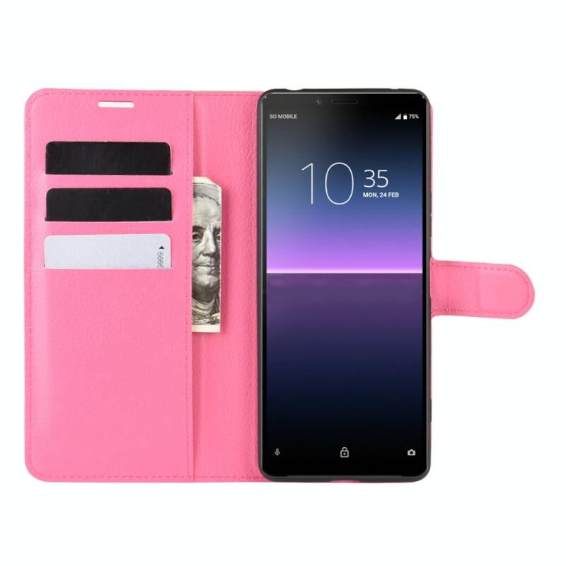 Για Sony Xperia 10 II Litchi Υφή Οριζόντια Flip Προστατευτική θήκη με θήκη & υποδοχές για κάρτες & πορτοφόλι (Rose red)