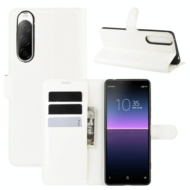 Για Sony Xperia 10 II Litchi Texture Οριζόντια Flip προστατευτική θήκη με θήκη & υποδοχές για κάρτες & πορτοφόλι (Λευκό)