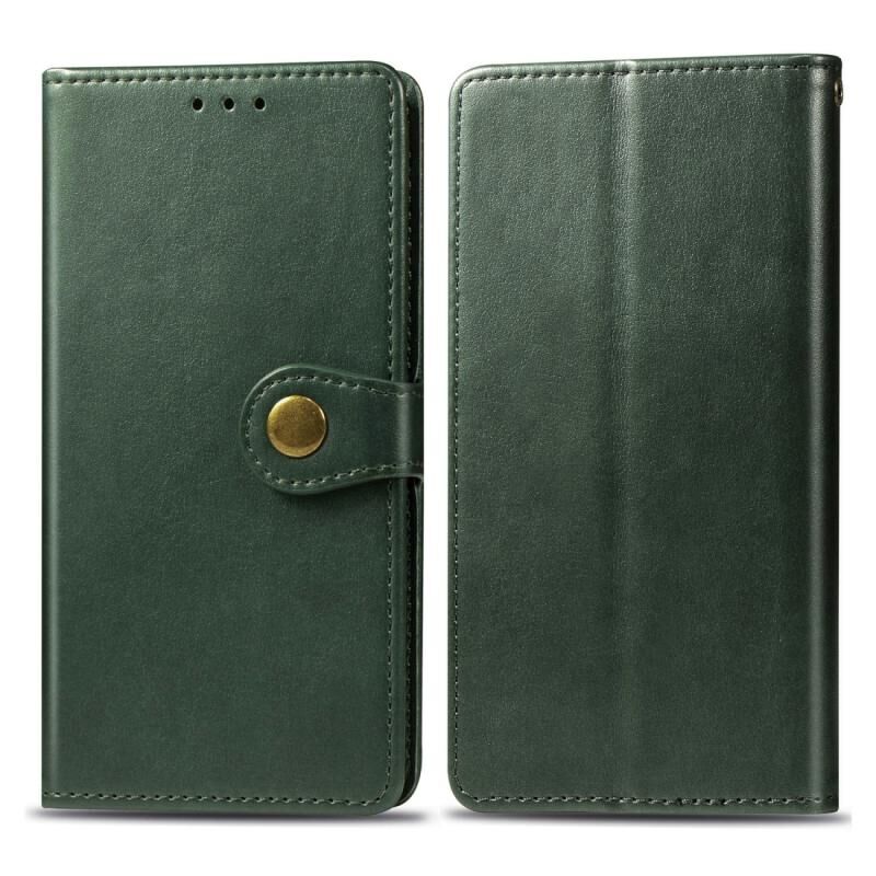 Για Sony Xperia 10 II Ρετρό στερεό χρώμα δερμάτινη θήκη τηλεφώνου με αγκράφα και κορνίζα φωτογραφιών, υποδοχή για κάρτες, πορτοφόλι και λειτουργία στάσης (πράσινο)