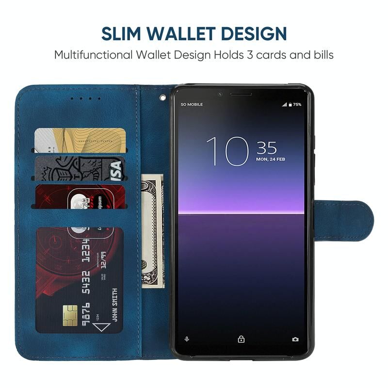 Για το Sony Xperia 10 II Skin Feel Geometric Lines Δερμάτινη θήκη τηλεφώνου (μπλε)