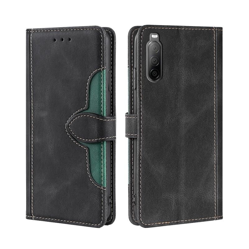 Για το Sony Xperia 10 II Skin Feel Straw Hat Μαγνητική πόρπη δερμάτινη θήκη τηλεφώνου (Μαύρο)