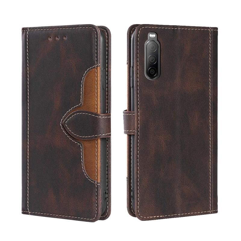 Για το Sony Xperia 10 II Skin Feel Straw Hat Μαγνητική πόρπη δερμάτινη θήκη τηλεφώνου (καφέ)