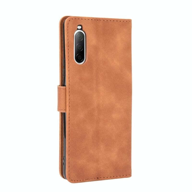 Για το Sony Xperia 10 II Solid Color Skin Feel Magnetic Buckle Horizontal Flip Calf Texture PU Leather Case with Holder & Card Slots & Wallet (Brown)