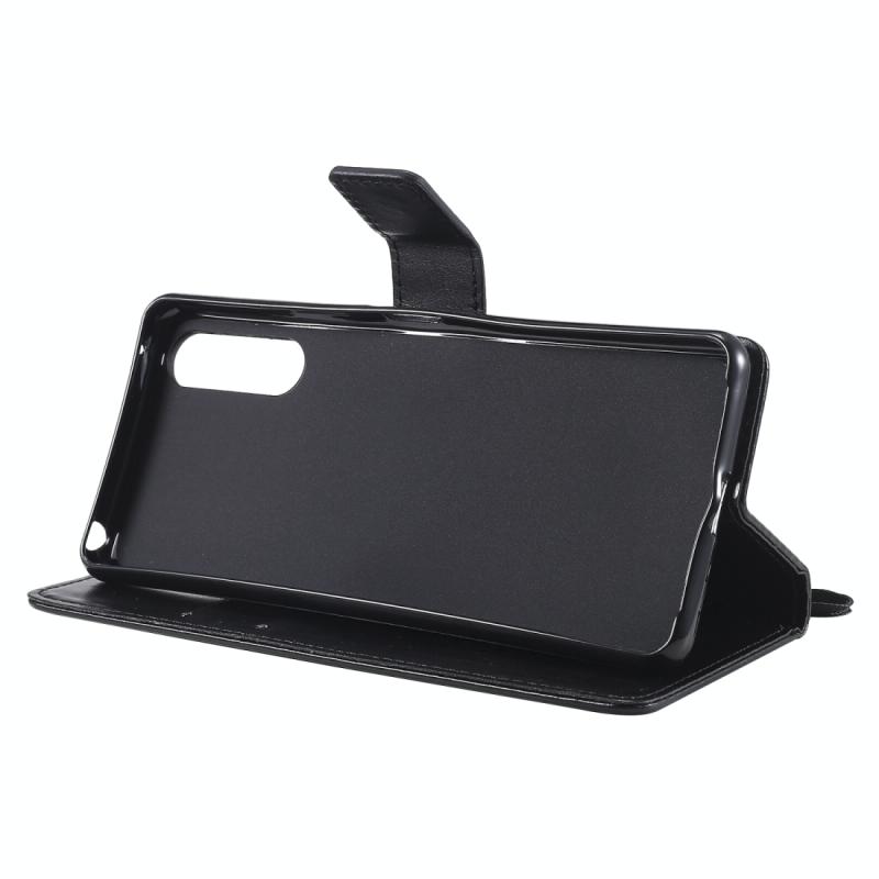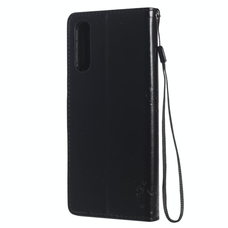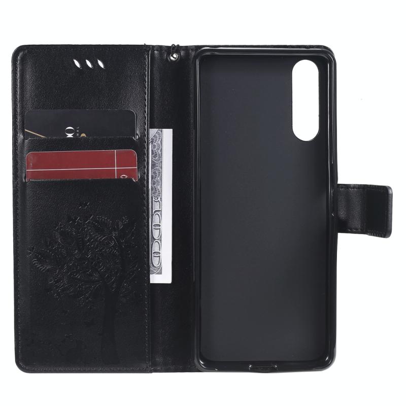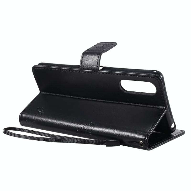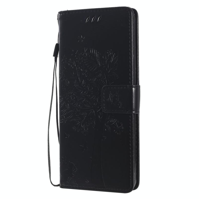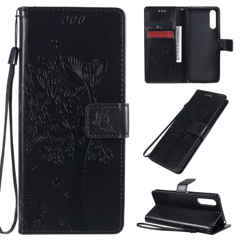 For Sony Xperia 10 II Tree & Cat Embossed Pattern Horizontal Flip Leather Case with Holder & Card Slots & Wallet & Lanyard(Black)