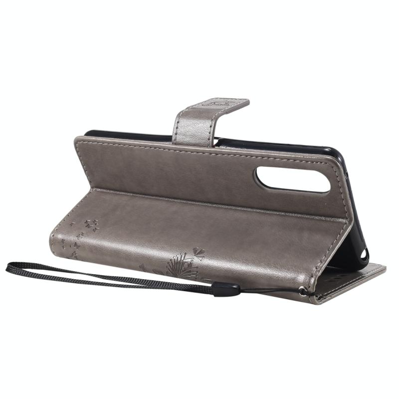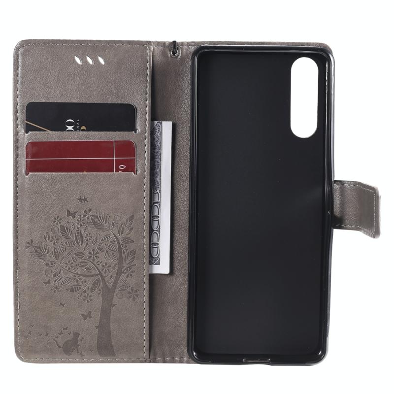 For Sony Xperia 10 II Tree & Cat Embossed Pattern Horizontal Flip Leather Case with Holder & Card Slots & Wallet & Lanyard(Grey)