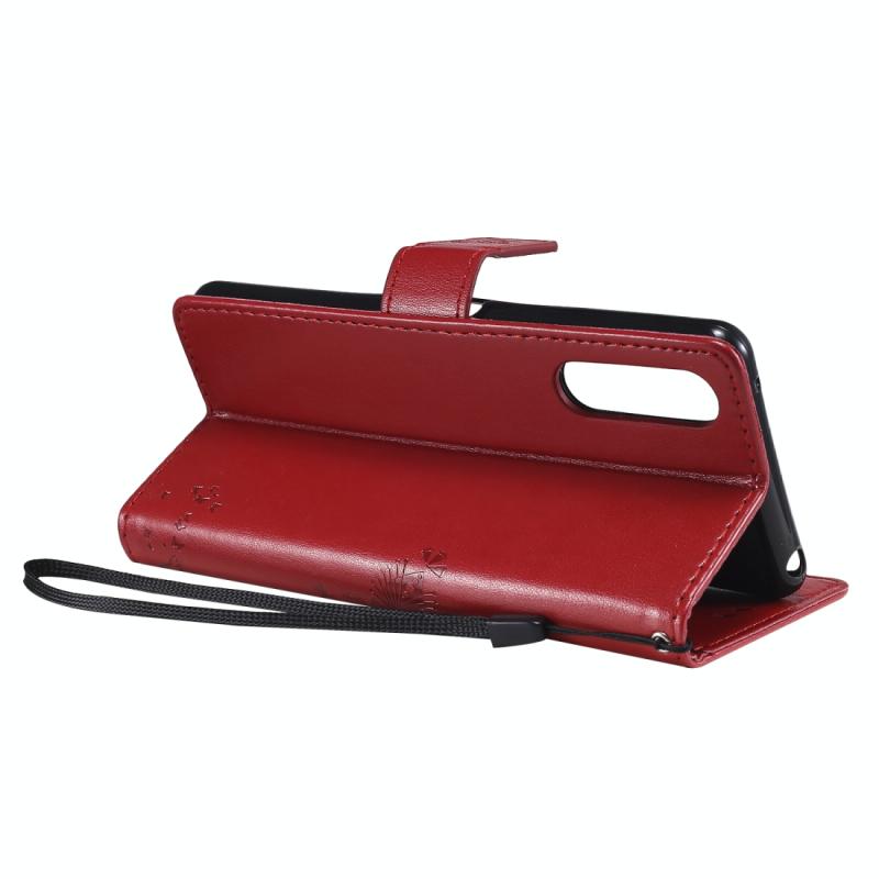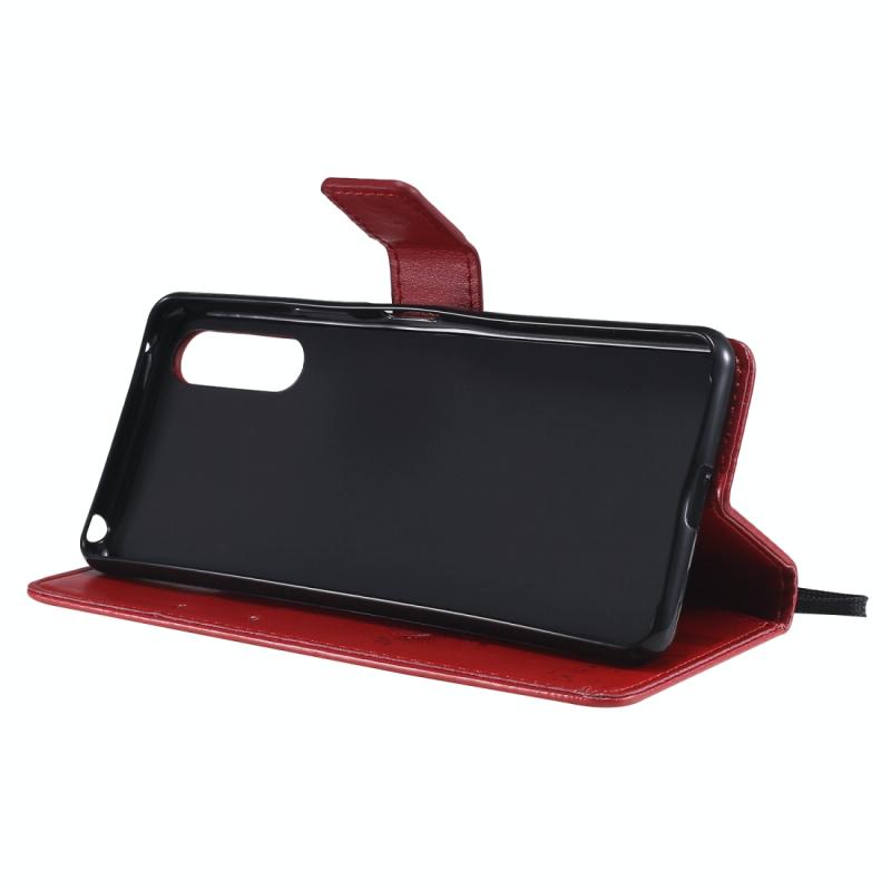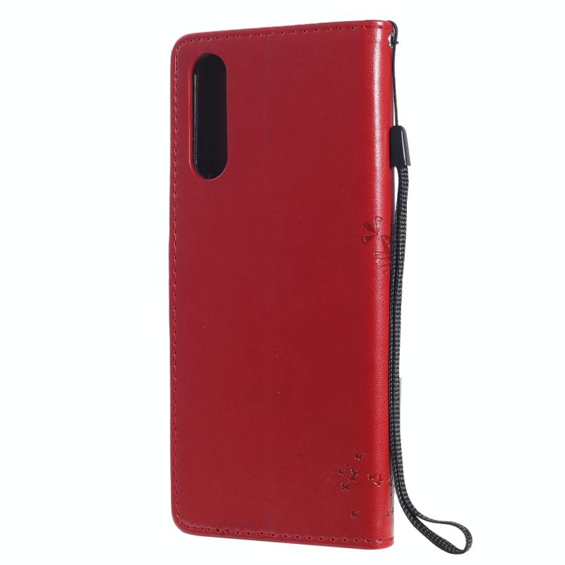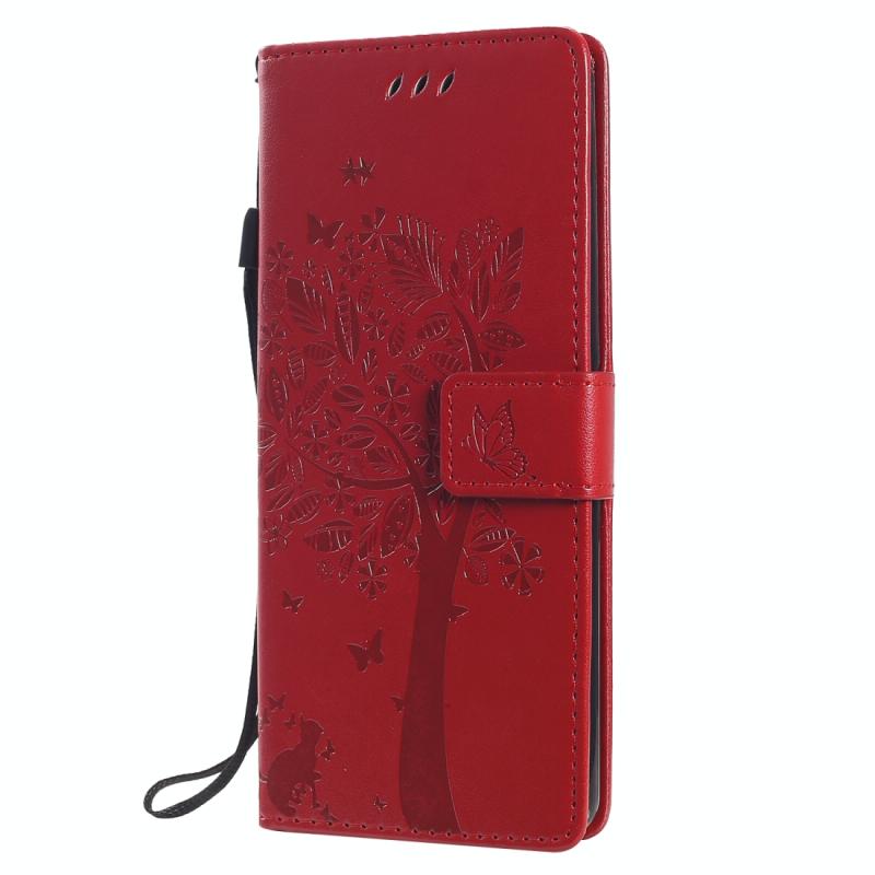 For Sony Xperia 10 II Tree & Cat Embossed Pattern Horizontal Flip Leather Case with Holder & Card Slots & Wallet & Lanyard(Red)