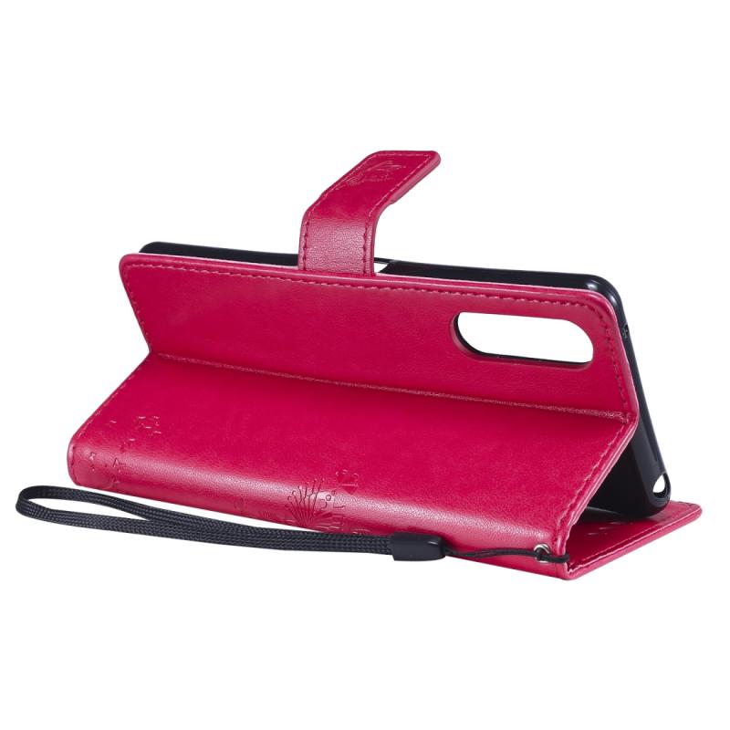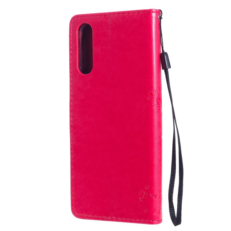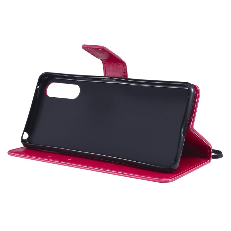 For Sony Xperia 10 II Tree & Cat Embossed Pattern Horizontal Flip Leather Case with Holder & Card Slots & Wallet & Lanyard(Rose Red)