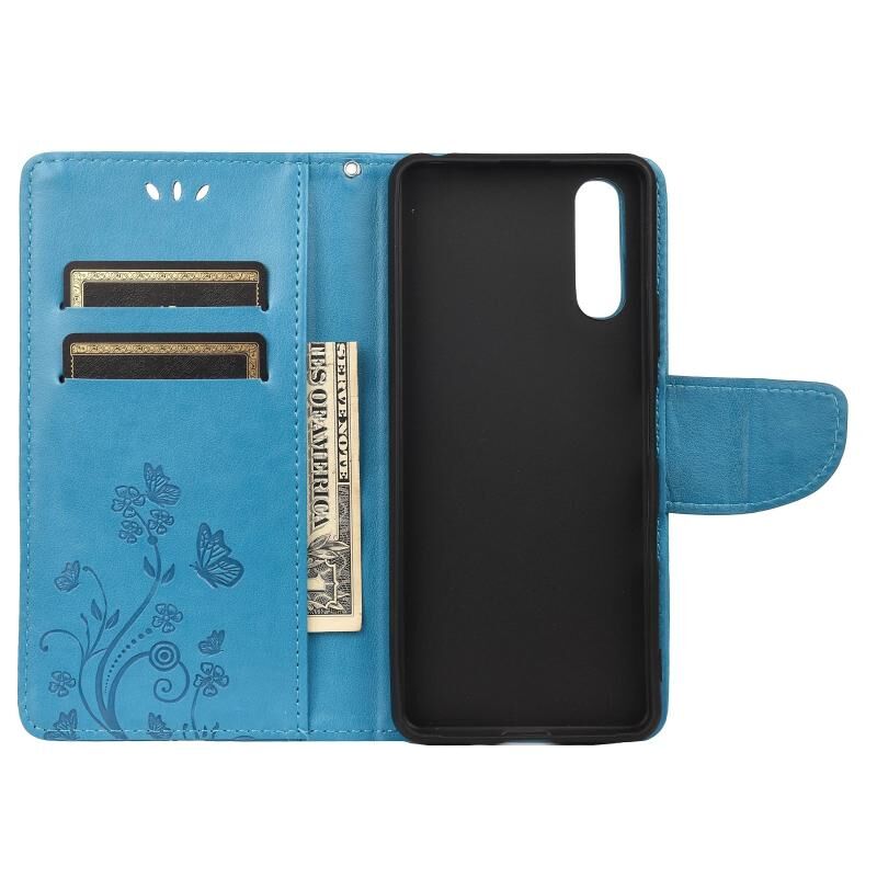 Θήκη δέρματος οριζόντιας αναδίπλωσης για Sony Xperia 10 III με σχέδιο πεταλούδας και λουλουδιών, με βάση & υποδοχές καρτών & πορτοφόλι (Ανοιχτό Μωβ)
