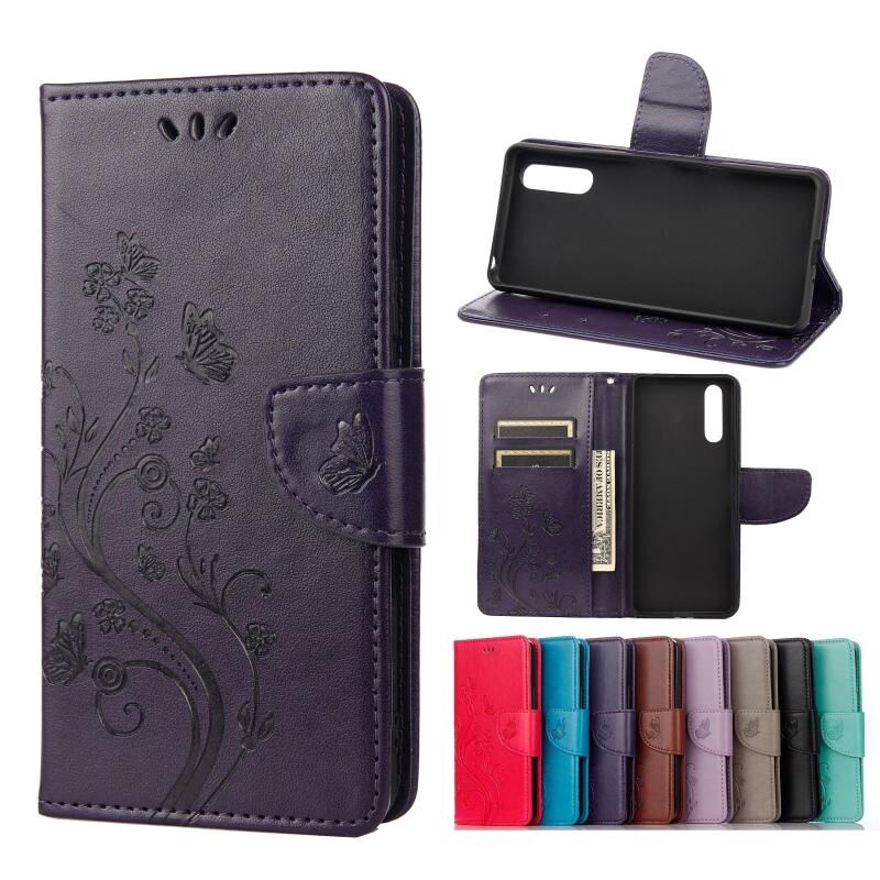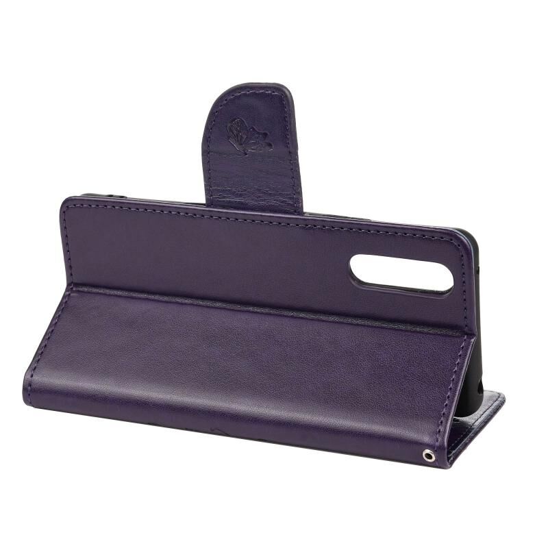 Θήκη δέρματος οριζόντιας αναδίπλωσης για Sony Xperia 10 III με σχέδιο πεταλούδας και λουλουδιών, με βάση & υποδοχές καρτών & πορτοφόλι (Ανοιχτό Μωβ)