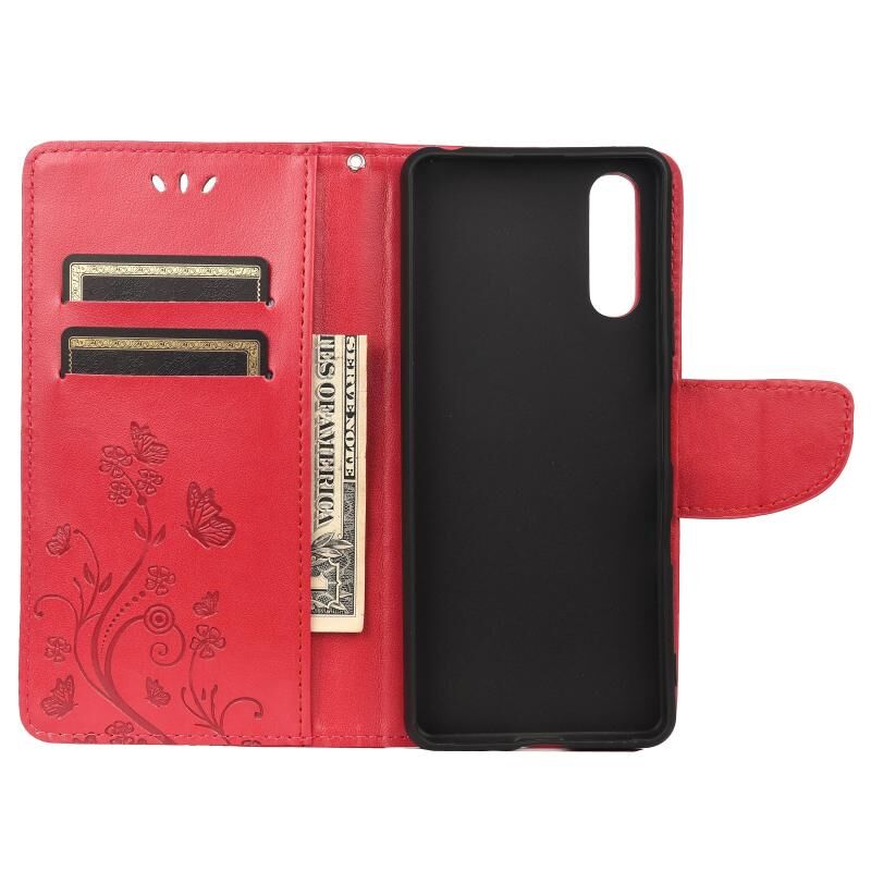 Θήκη δέρματος οριζόντιας αναδίπλωσης για Sony Xperia 10 III με σχέδιο πεταλούδας και λουλουδιών, με βάση & υποδοχές καρτών & πορτοφόλι (Ανοιχτό Μωβ)