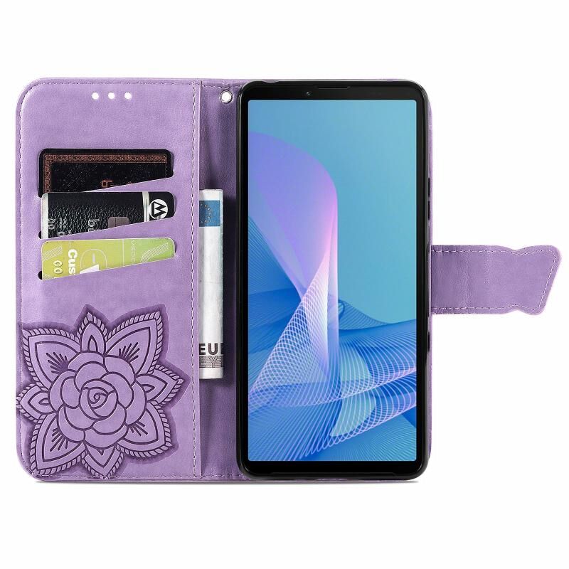 Για το Sony Xperia 10 III Πεταλούδα αγάπη λουλούδια ανάγλυφο οριζόντια Flip δερμάτινη θήκη με υποδοχές για κάρτες & υποδοχές & πορτοφόλι & κορδόνι (ανοιχτό μοβ)