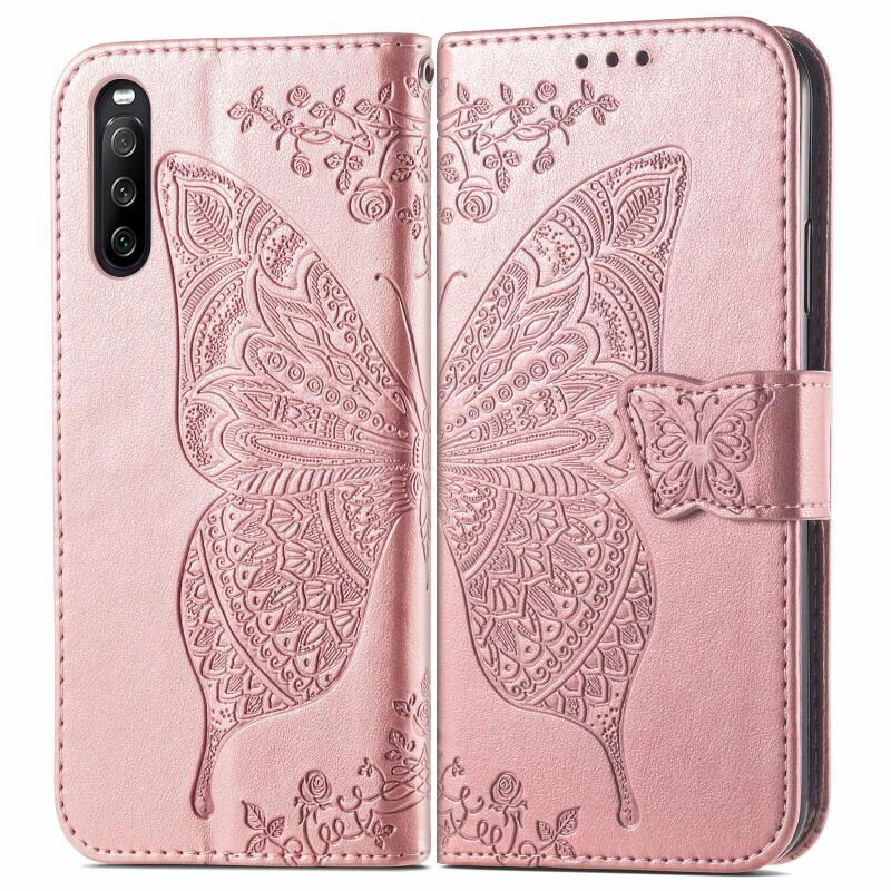 Για το Sony Xperia 10 III Πεταλούδα αγάπη λουλούδια ανάγλυφο οριζόντια Flip δερμάτινη θήκη με υποδοχές για κάρτες & θήκες & πορτοφόλι & κορδόνι (Rose Gold)