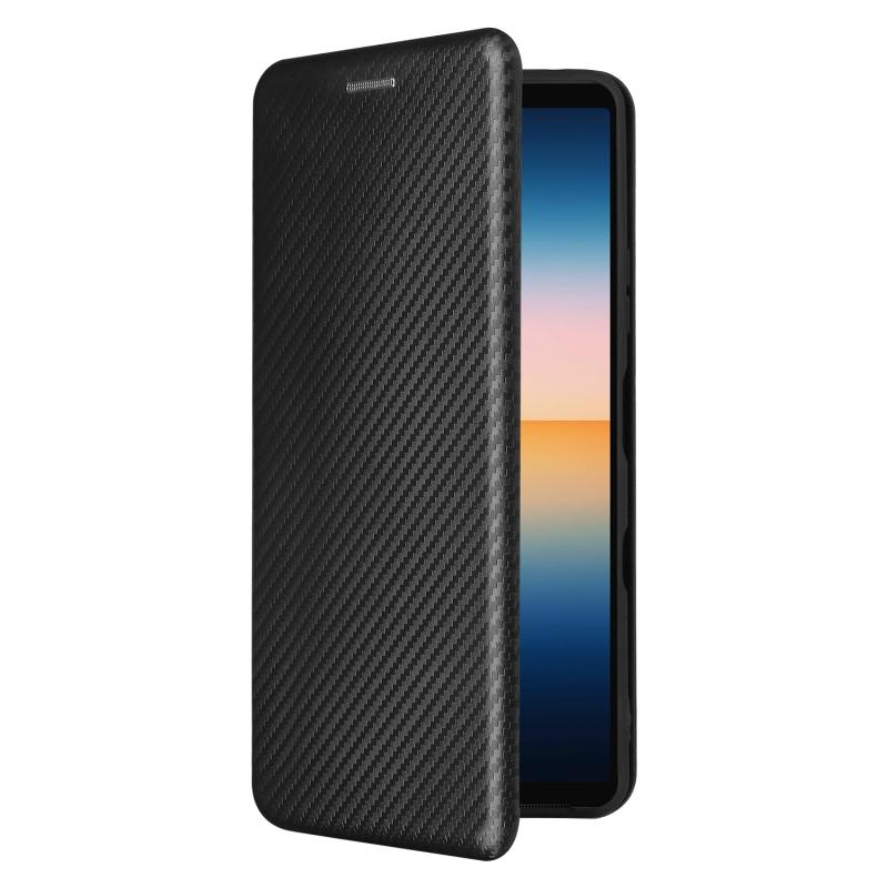 For Sony Xperia 10 III Carbon Fiber Texture Horizontal Flip TPU + PC + PU Leather Case with Card Slot(Black)